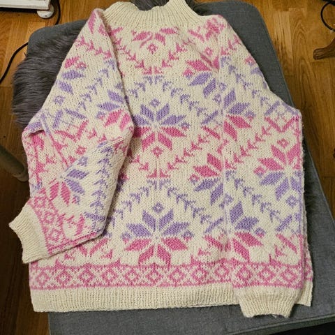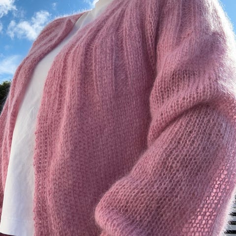 Strikket i dobbel silk mohair fra Sandnes garn.