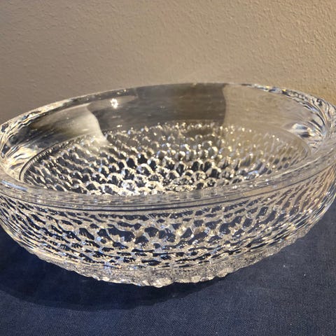 Isbøtte i Svalbard-serien, designet av Willy Johansson for Hadeland glassverk. I fin vintage stand. 13 cm i diameter og 12 høy + hank. Den veier 1,7 kg. Kr. 400,-