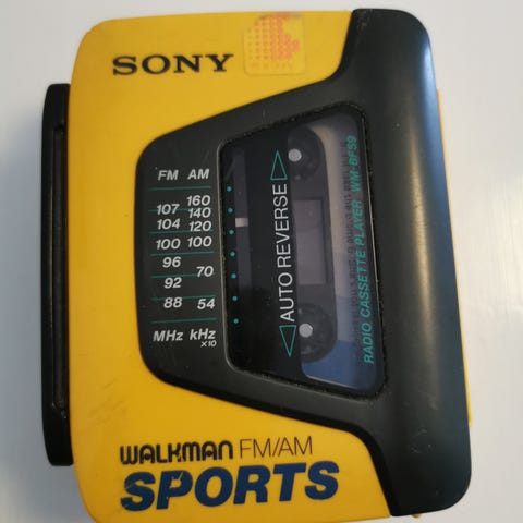 Selger en svært pen Sony Sports Walkman. En skikkelig klassiker vi alle husker. Fungerer som den skal. Ingen irr eller vannskader. Har desverre ikke headphones lenger.
