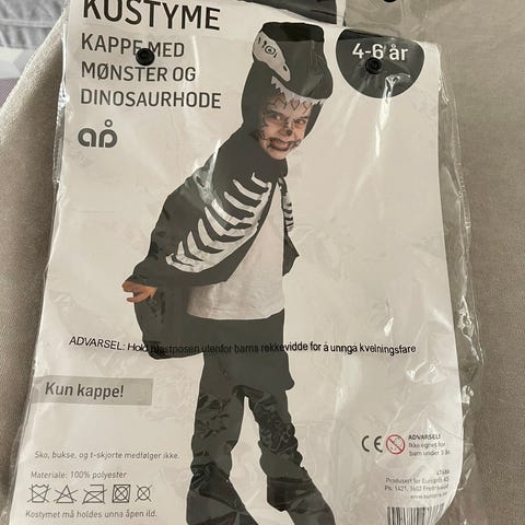Unikt og morsomt barnekostyme i grønn velour/stoff med struktur. Drage, dinosaur eller til og med krokodille! Kostymet har hale og “skjell-look”, perfekt til karneval, fastelavn, barnebursdag eller lek. Myk og behagelig, god bevegelighet. Pent brukt. Størrelse: 1–2 år