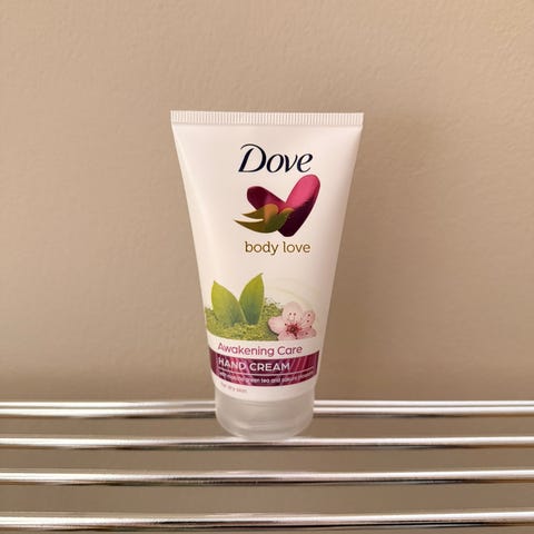 Dove Skin Glow body lotion i rosa emballasje, samt flere hud- og kroppspleieprodukter inkludert Garnier BB Cream, I-cos fotkrem, Schwarzkopf Country Color hårfarge, voksstrips med aloe vera, (brukt noe)og ulike parfymer og dusjprodukter fra merker som Elizabeth Arden Eau de toilette. Produktene varierer i type og emballasje, og inkluderer både krem, lotion, voksstrips og parfymeflasker.