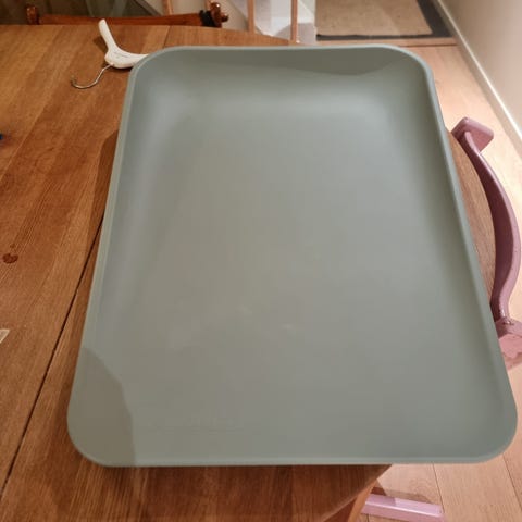 Leander stellematte i rosa med to Leander topper/håndklær i blått og grønt. Myk og god for babyen. Enkel å vaske.