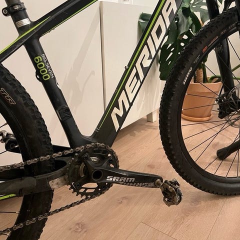 Lett stålramme i størrelse S selges med original karbongaffel, Chris King styrelager samt Shimano XT M770 krank. Kjedet er fjernet og stem, styre, sete og setepinne og pedaler følger ikke med. Drev (Absolute Black Oval 30t) kan følge med for +300kr. Hjulsettet er et Mavic TN719 Disc 29” med Chris King ISO Singlespeed nav med 19t CK tannhjul i stål og 8mm FunBolts. Hjulsettet ruller greit men kan trenge en sørvis. Det kan følge med for +2500kr, eller selges separat. Ellers så har rammen Niners egne eksentriske kranklager som gjør et singlespeed oppsett kjempeenkelt. Ønsker man gir må man skaffe et annet hjulsett og et girøre. En kjempelett og responsiv sykkel som dessverre er for liten til meg, uten pedaler og bremser og med tunge dekk veier den ~9.4kg.
