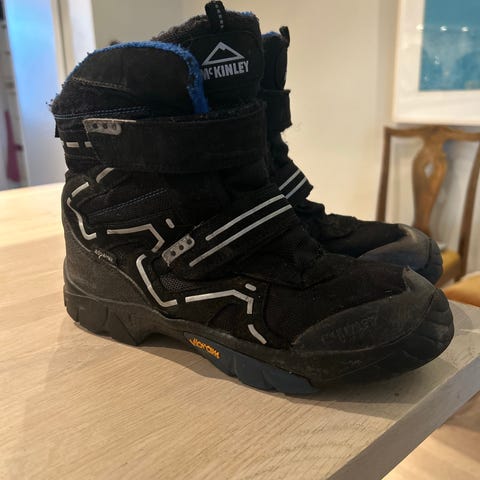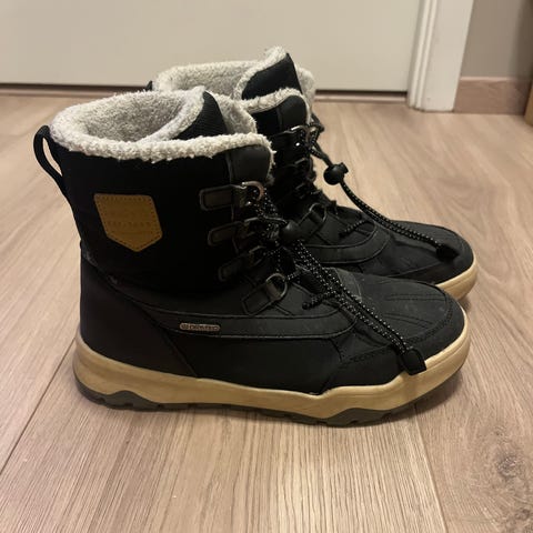 Fine, varme vintersko brukt en sesong. Litt slitasje foran, selges derfor billig. Ellers er de i god stand.