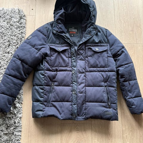 Superdry Rescue Indigo jakke i blå farge, størrelse XXL. Størrelsen tilsvarer mer en L/XL. Tykk og varm jakke. Har dessverre mistet fuskepels rundt hetta. Lite brukt.50 % dun 50 % dun fyll.