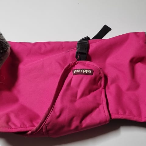 Pomppa Hundedekken Vinter i lilla, størrelse 34. Dekkenet har refleksdetaljer og er foret med mykt, isolerende materiale for å gi varme. Egnet for bruk på hunder i kaldt vær.