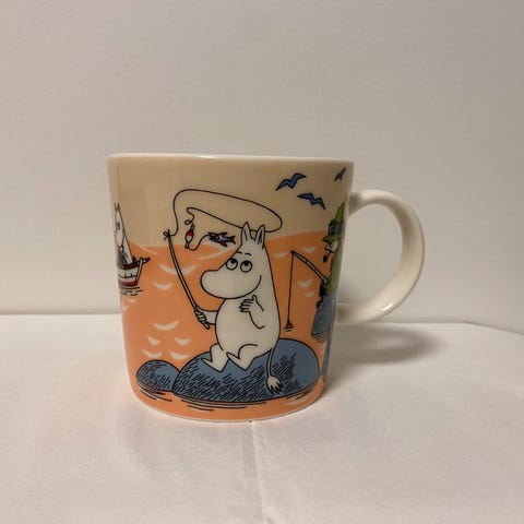 Mummitrollet på isen, 1999 - 2012. Koppen er pent brukt, og har stort sett stått til pynt. Uten merkelapp.