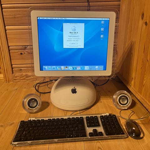 Vintage hvit laptop. En klassiker. En del riper. Batteriet er bortimot dødt. Men maskinen funker som den skal👍🏻