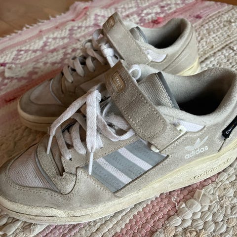– Semsket skinn, gummi, tekstil, polyester.