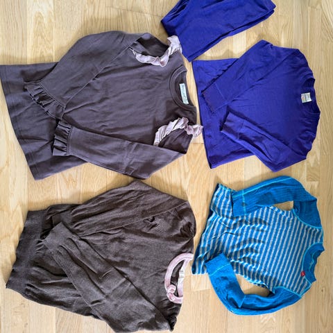 Klespakke ull. Strikkegenser / strikkebukse osv. Str 122/128.