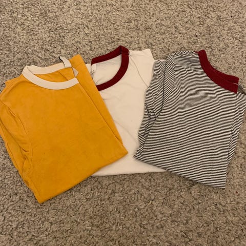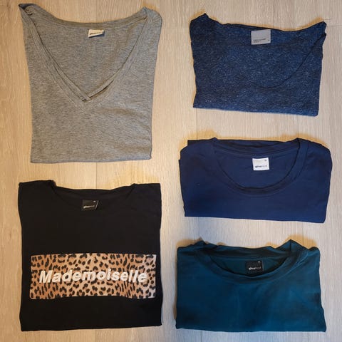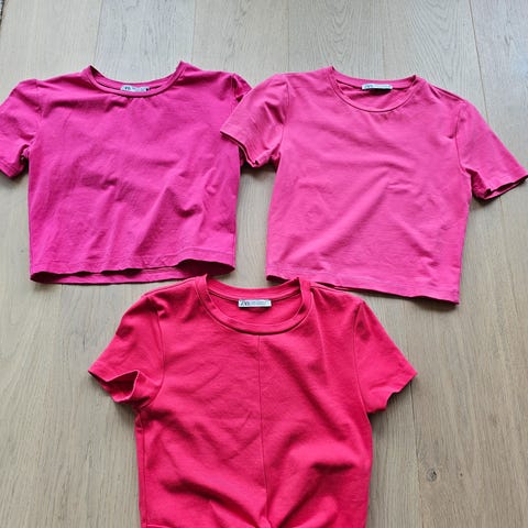 T-skjorter for kvinner i størrelse XS med flerfarget design. Zara, Gina Tricot og H&M er merkene. Selges samlet.