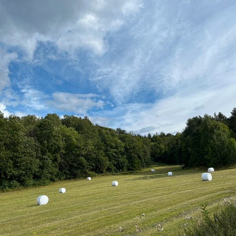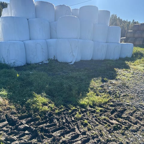 Rundballer pakket i plast. Fra 2. slått sommer 25. tørt for.