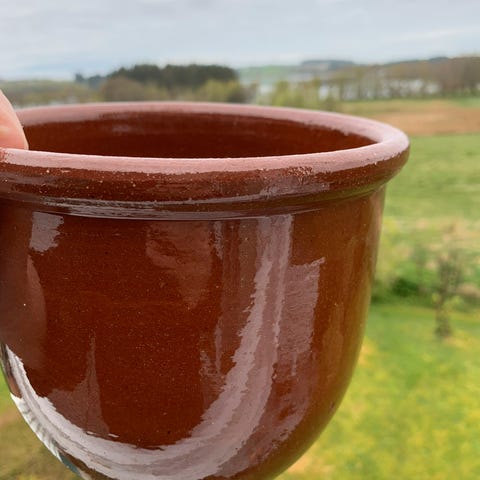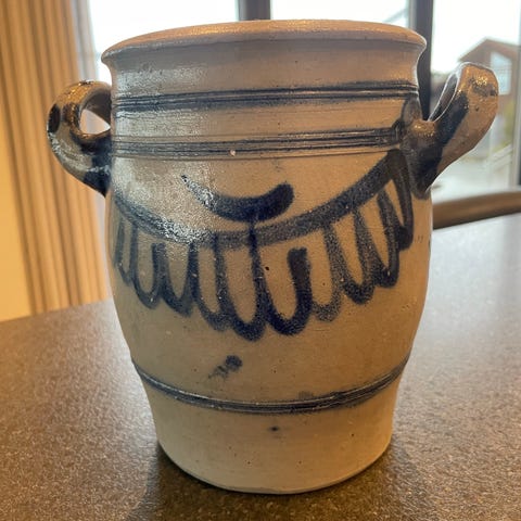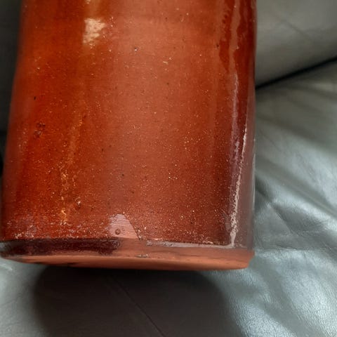Stor flott retro brun krukke i keramikk. Synlig brukt. 17 cm høy