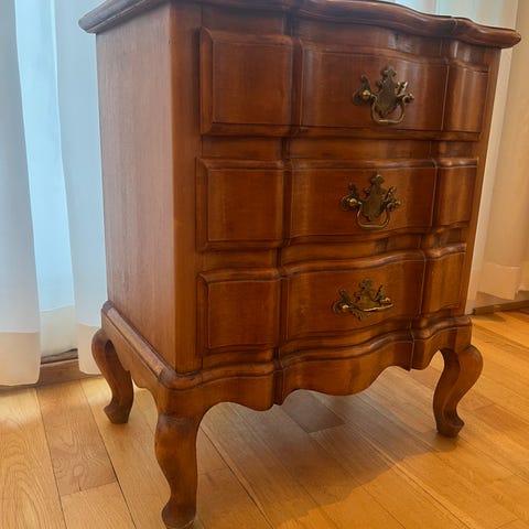 Pent brukt kommode selges rimelig mot henting. Har også nattbord, skap og seng i samme serie.