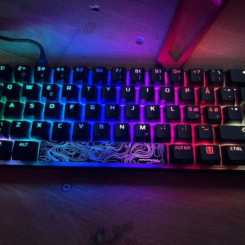 HyperX Alloy FPS RGB mekanisk tastatur med RGB-belysning og svart farge. Tastaturet er designet for gaming og har mekaniske taster som gir presis respons og holdbarhet. Passer for brukere som ønsker et tastatur med tilleggsutstyr for datamaskin.