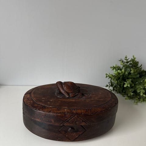 Vintage keramisk dekorasjonsfat i blå farge. Fatet har et åpent, flettet design med en rund form. Egnet for dekorasjon eller som serveringsfat.