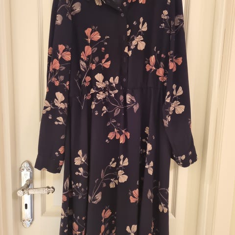 Line of Oslo hverdagskjole i fløyel, blå farge, størrelse XL. Kjolen er laget for kvinner og egner seg til hverdagsbruk..