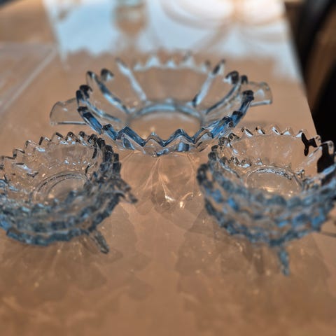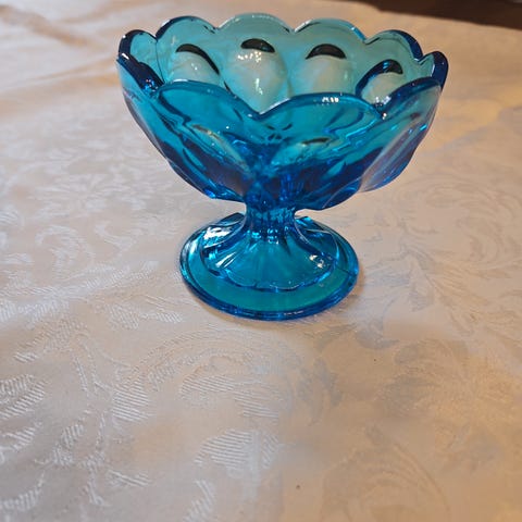 Sukkerskål med blå glassbolle og skje