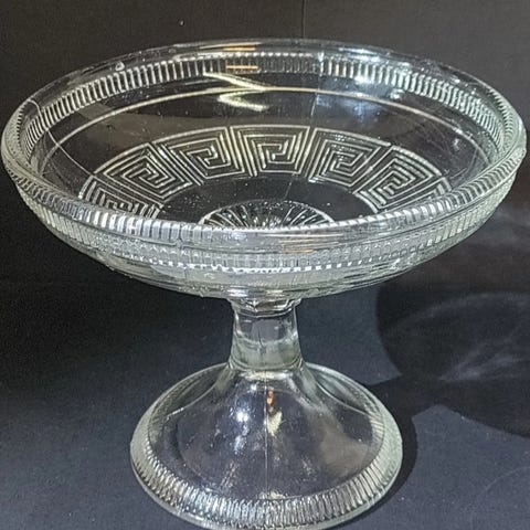 Sukkerskål med koboltblå glassbolle og tilhørende skje. Skålen har et dekorativt mønster. H:6, Ø:10