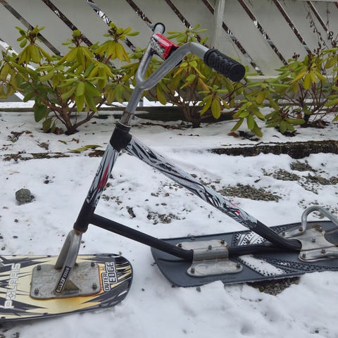 Den store sparkesykkelen må justeres. Jeg er ikke sterk nok i hendene til å fikse den.