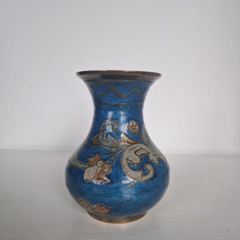 Ubeskrivelig vakkert vase/lysestake. Ser ut som gullplett. Pent brukt, lite små bruksmerker, se bilder. Ganske tungt. Kan pakke veldig godt og sende med extra porto.