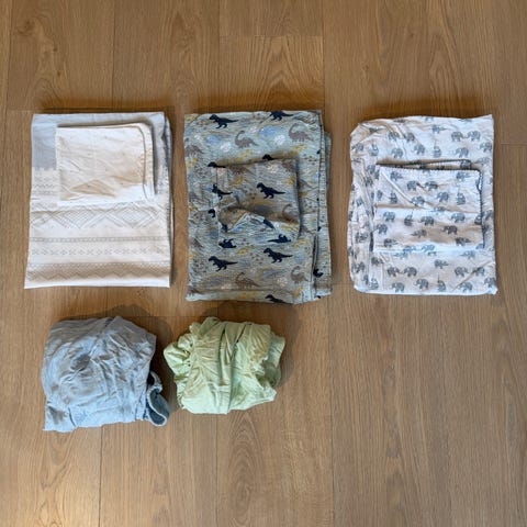 Selger 3 laken, 2 dynetrekk og et putetrekk til baby/barn.