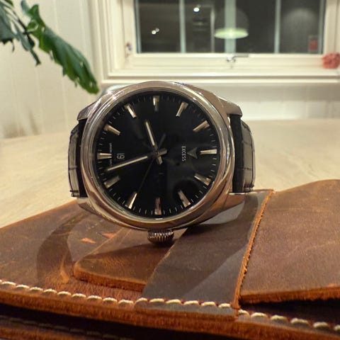 Klokken kombinerer et moderne, minimalistisk uttrykk med høy byggekvalitet – perfekt både til jobb og penere anledninger.