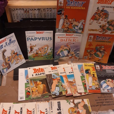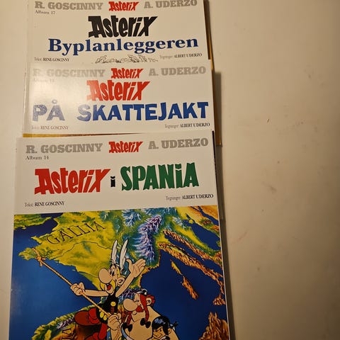 34 stk Asterix album tegneserier soft cover flere 1 utgaver. Noen med litt slitasje på ryggen.