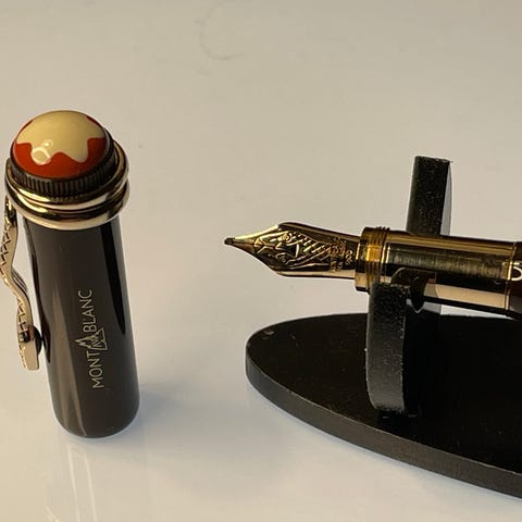 Montblanc Boheme Bleu Rollerball Pen, Black Resin, Platinum Plated Trim, Blue Sapphire Stone - VP523