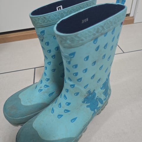 Viking barne gummistøvler i størrelse 33, designet for unisex bruk. Støvlene er blå og laget i gummimateriale med foret innside for komfort. Egnet for bruk i vått vær og utendørsaktiviteter.