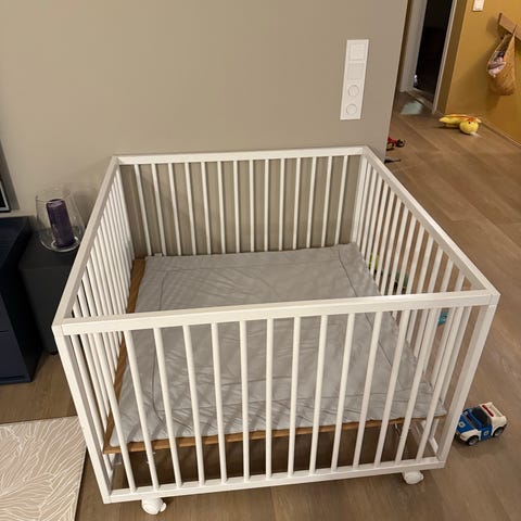 Pen IKEA BUSUNGE vokseseng i hvit farge selges. Dette er en praktisk seng som passer perfekt som overgang fra sprinkelseng, og som kan brukes videre etter hvert som barnet vokser. Sengen fremstår i fin stand og er klar for ny eier. Den er demontert og klar for henting. Madrass følger med.