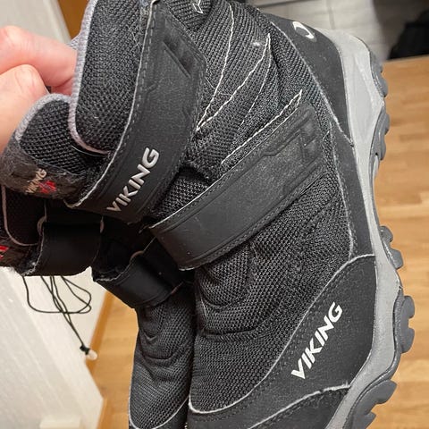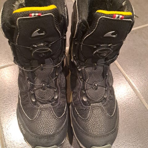 Viking barnesko for unisex i størrelse 39. Gore-tex. Skoene er svarte og laget for barn. De har en solid såle med godt grep, og er designet for å gi komfort og støtte til barnets føtter.