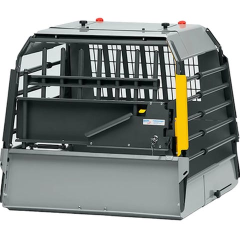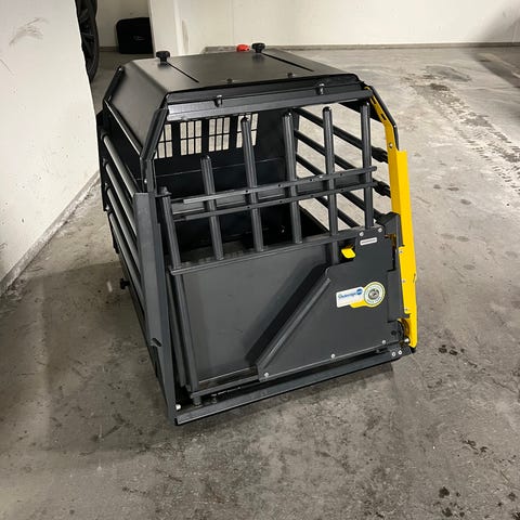 MIMSafe VarioCage Single hundebur str. L med justerbar lengde fra 770 til 1030 mm, bredde 650 mm og vekt 17 kg. Buret er laget i svart materiale og egnet for sikker transport av hund. Pent brukt, lite brukt. Har gått over til ny bil og passer ikke lengre i min bil.