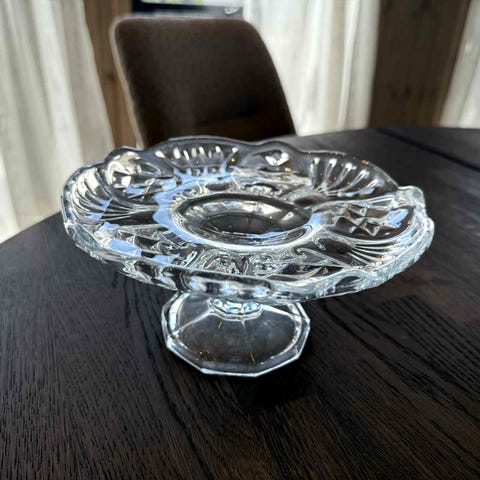 Vakker stettskål i krystall med nydelig håndslepen dekor