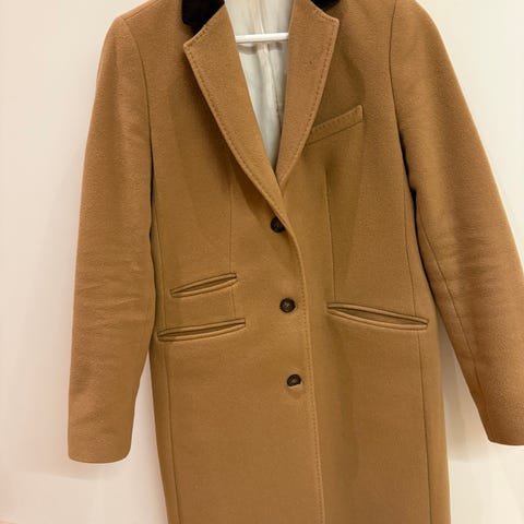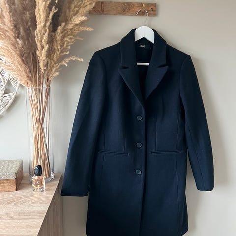 Ullkåpe fra Ellos i størrelse M selges. Jakken har marine blå farge. Den har knappelukking og foret innside.40% ull. Den er veldig elegant.