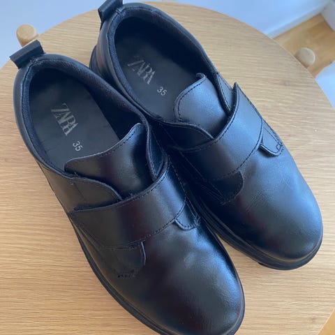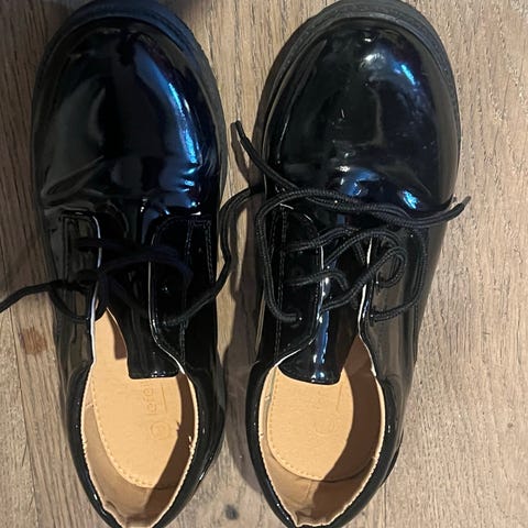 Next sko for gutt i størrelse 36. Skoene er svarte og laget i skinnmateriale.