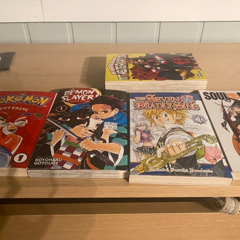Diverse manga, forskjellige serier One Punch Man 1-3, Pokemon 1 og 2, Tokyo Ghoul, The Girl From The Other Side, Bleach, Dandadan, Assasination Classroom