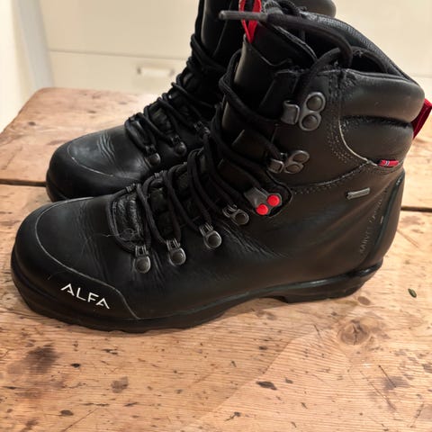 Alfa Skarvet Adv. gtx skisko i størrelse 45. Brukt noen få turer. Litt slitasje på skinn på innsiden av skoene