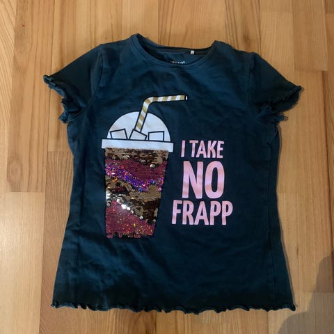 En flekk på den hvite t-skjorten. Har ikke prøvd å fjerne den.