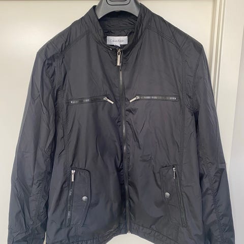 Calvin Klein jakke i størrelse L, svart farge og laget av dun. Jakken er egnet for utendørs bruk og gir isolasjon og varme.