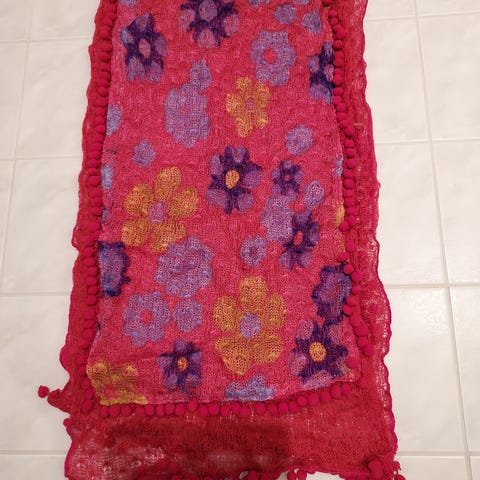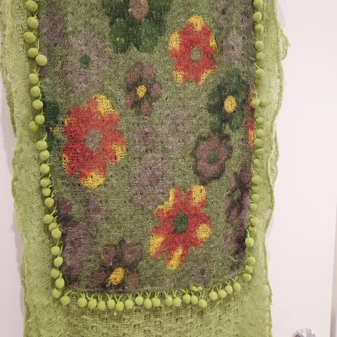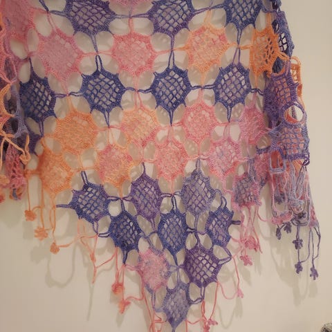 Sjalet er ca 100x140 stort og vevet i tynn myk ull