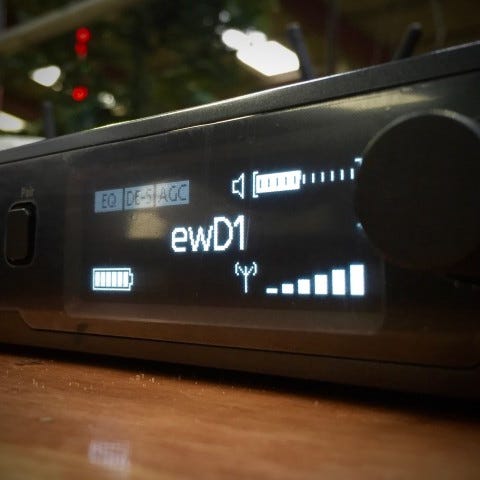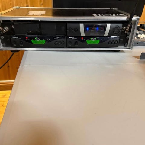 Sennheiser EW300G2 4 kanals beltpack system med antennesplitt montert i 4 unit Gator softrack. Leveres med 4 Sennheiser ME3 bøylemikrofoner. Bygd om fra D range (786-822) til A range (518-554). Har 2 system tilgjengelig, selges eventuelt samlet for 18000,-.