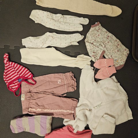 Inneholder ulike plagg som bodyer, pysjer og bukser.
