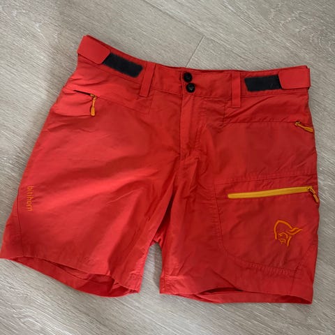 Dameshorts fra Norrøna i strl. M. Godt brukt over en sommersesong. Veldig god kvalitet og mye bruk igjen. Kan strammes og slakkes med to borrelåser rundt hoftene for å tilpasse størrelsen. Ingen synlige merker eller skader. Selges fordi den er blitt for liten.