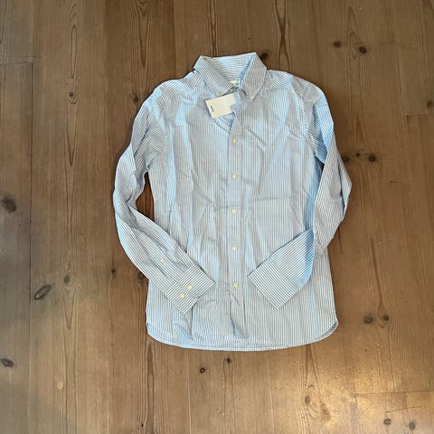 J. Lindeberg genser i hvit farge, med grå stripe på ermer, størrelse XS, laget av mohairull ull og litg polyamide. Genseren har en myk tekstur og er unisex. Str xs. Da er den romslig. Brukt av meg som er M ( da normal i str)