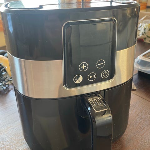 Emerio Smart Fryer Airfryer i svart farge. Utstyrt med digitalt kontrollpanel med temperaturdisplay og flere forhåndsinnstilte matlagingsprogrammer. Designet for å tilberede mat med varmluftsteknologi.