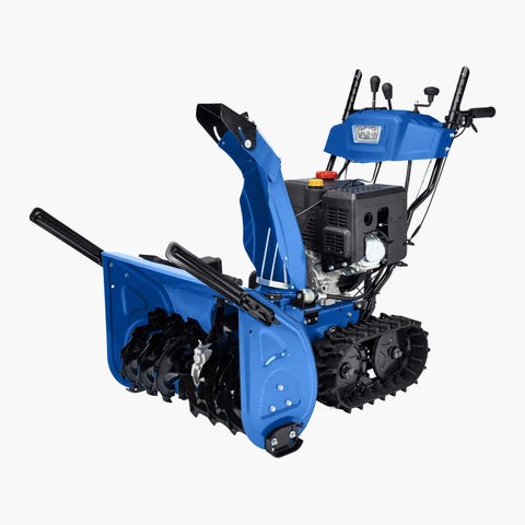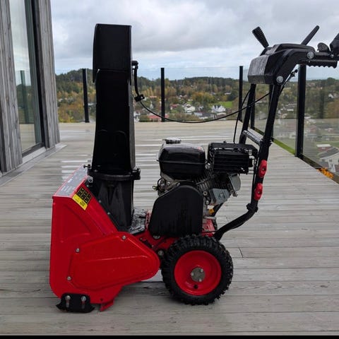 Biltema CST 7113 snøfreser. Utstyrt med beltedrift for bedre fremkommelighet på snødekte underlag. El start, lys og varme i håndtak. Ny i januar 2022.