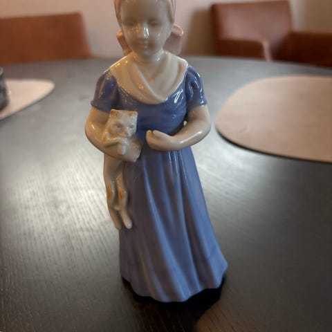 Blå og hvite figurer, hele og fine, med inntakt propp under. Ca 9 cm høye