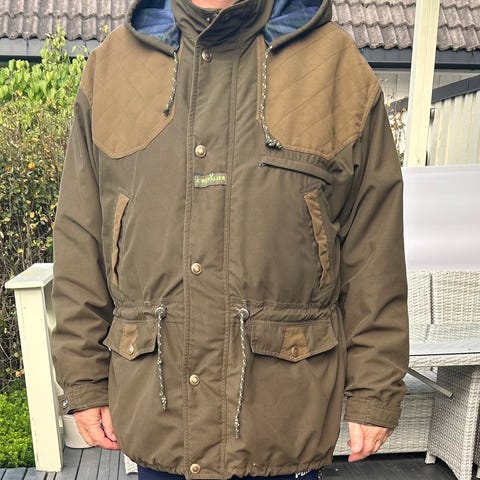 Brukt noen få turer og fremstår som ny. Pointer Pro Chevalite jakke og bukse i fargen Autumn Green, størrelse XL i jakke og str 56 i bukse for herre vurderes solgt. Nypris 9000,- selges for 6000,-