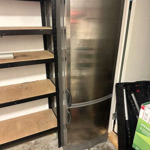 Whirlpool kjøleskap med hvit farge og flere hyller for oppbevaring. Egnet for kjøling av mat og drikkevarer i hjemmet eller lignende miljøer. Brukt som ekstra kjøleskap i bod. Må hentes i Moss.